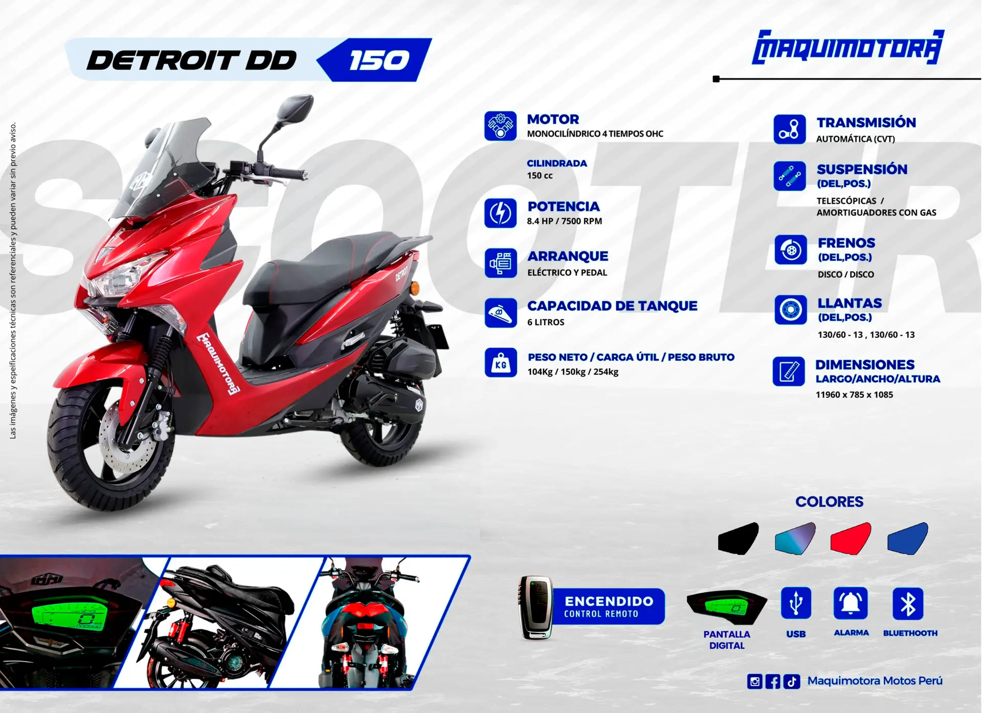 Un scooter de 150cc que fusiona un diseño deportivo con máxima eficiencia urbana. Ofrece gran agilidad con transmisión automática, un consumo de combustible bajísimo y el confort ideal para tus trayectos diarios.