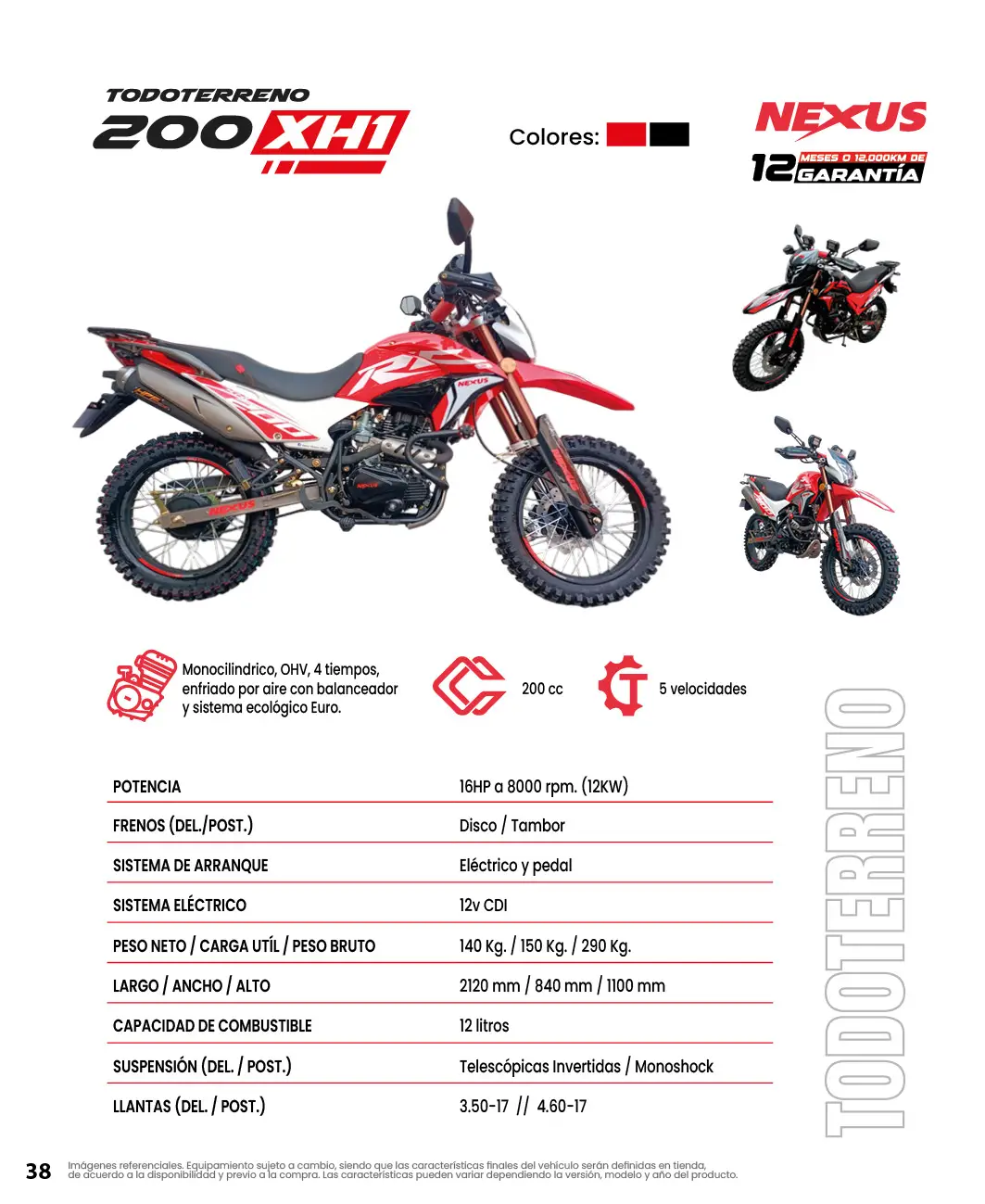 Nexus 200 XH1 ofrece motor 200cc, buen rendimiento y versatilidad para ciudad y terrenos.