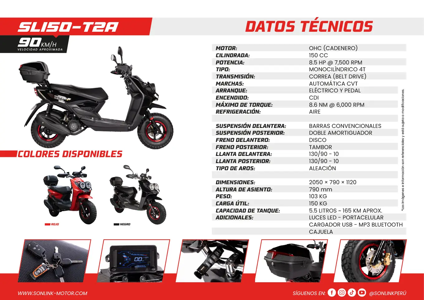 Scooter Sonlink SL150T-2A cómoda, ligera, tablero digital, cajuela y puerto USB.