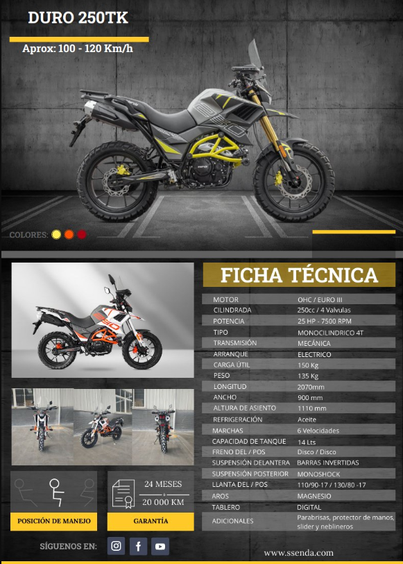 Doble propósito equipada con luces exploradoras, tablero digital y protección completa. Su motor de 250 cc entrega potencia suficiente para trabajo y rutas largas. Lista para terrenos exigentes, combinando resistencia y comodidad.